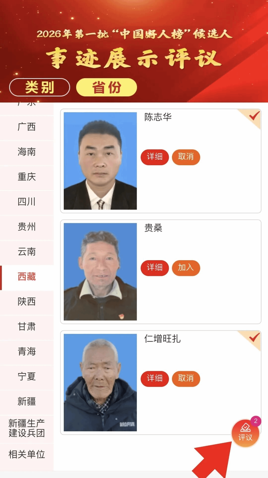 经过基层干部群众、各地文明办和相关单位推荐,2026年第一批中国好人榜候选人事迹展示评议即日起正式开始,持续至47日。网友可通过搜索关注凡事不凡中国文明网微信公众号,从首页下方菜单栏进入事迹展示评议页面参与活动。阿里地区2人被推选为2026年第一批中国好人榜候选人,分别是: