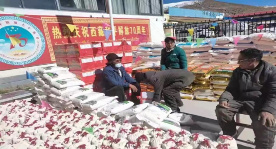 此次分红覆盖全村351户、1215人,每人一袋大米、一袋面粉、两袋糌粑、一桶精油,折合人民币共计380470元。