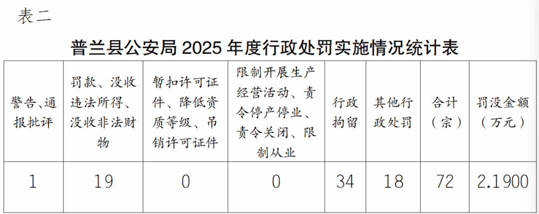 普兰县公安局2025年度行政执法统计年报
