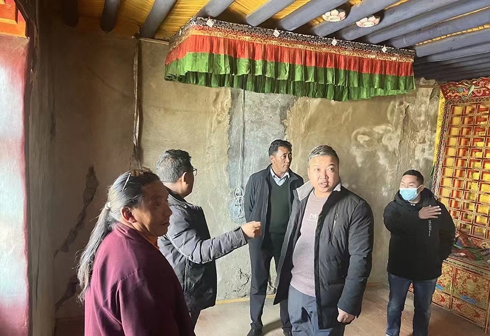 顿珠通过听取汇报、查阅资料等方式,对江扎寺、色龙寺每日巡逻、隐患排查、外来人员登记等各项维稳措施落实情况以及“三个意识”教育开展情况进行了检查;通过实地查看,对江扎寺建筑领域安全隐患和色龙寺用火用电用气等情况进行了认真细致的检查,提出切实可行的整改建议;通过座谈交流,向寺管会干部和寺庙僧人传达了区、地、县三级关于全国“两会”和三月期间维稳工作部署会议精神,宣讲了党的二十大及全国两会精神,听取了寺庙僧人在学修生活中存在的困难和合理诉求。同时,为寺庙僧人送去糌粑、大米等慰问物资。