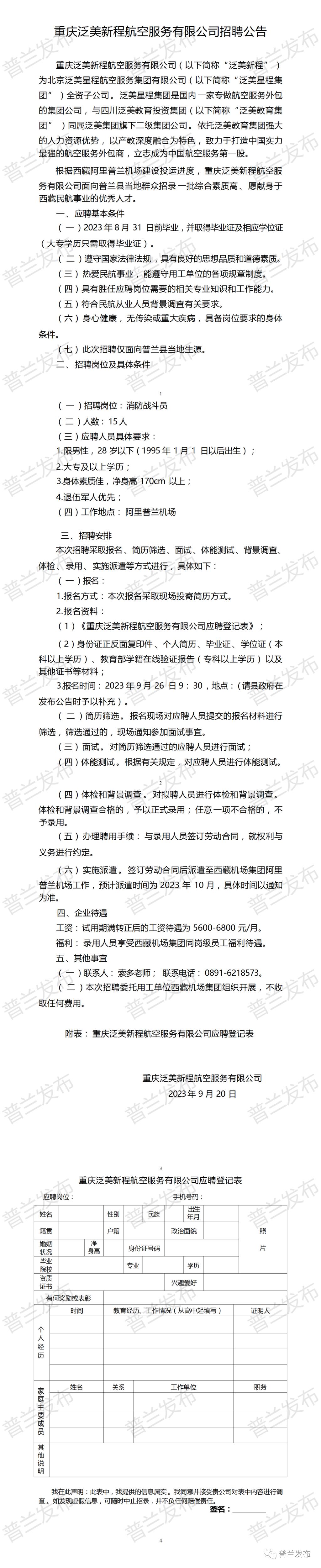 重庆泛美新程航空服务有限公司招聘公告