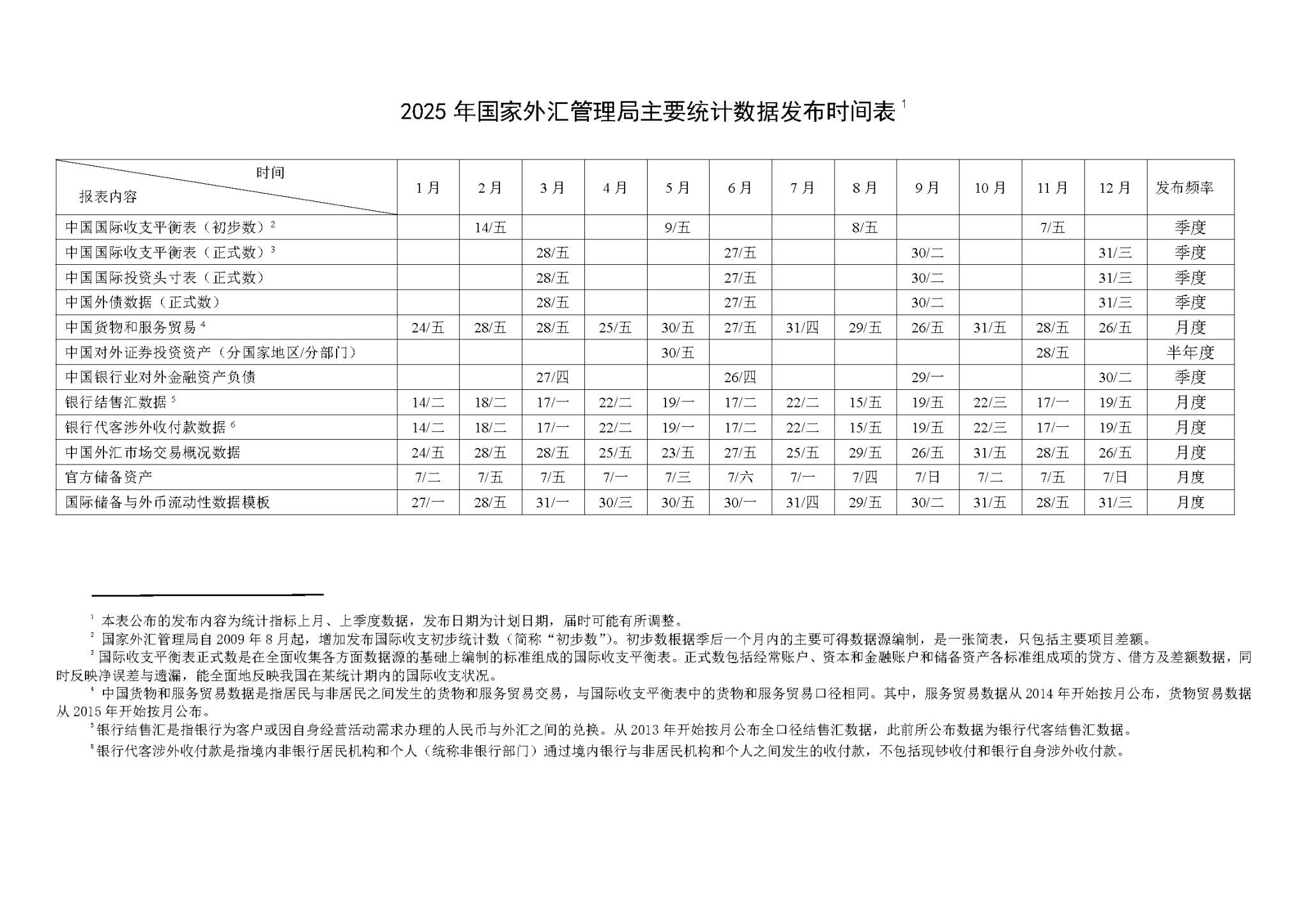 2025年国家外汇管理局主要统计数据发布时间表》。