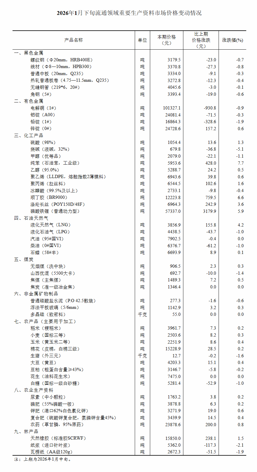 - 名 称:【数据发布】2026年1月下旬流通领域重要生产资料市场价格变动情况