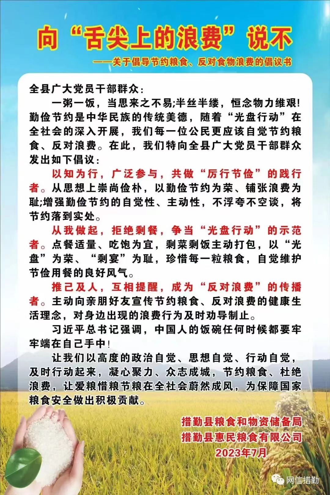 措勤县发布倡导节约粮食,反对食物浪费的倡议书