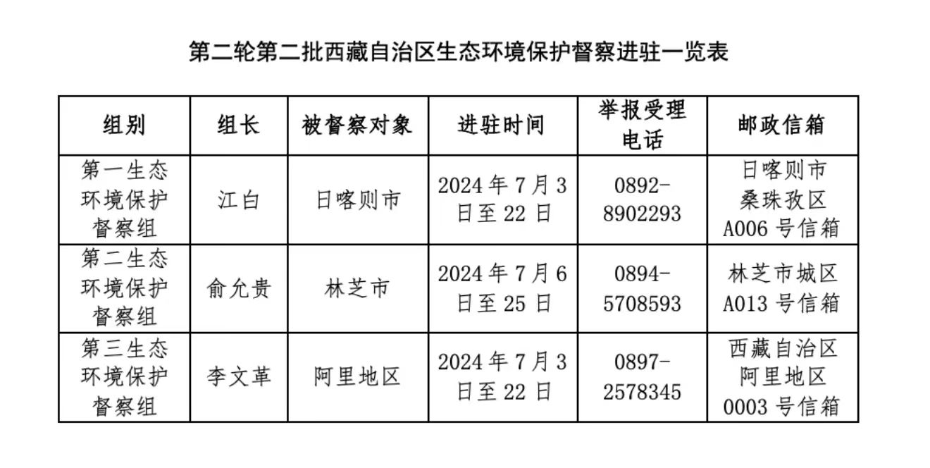 - 名 称:第二轮第二批西藏自治区生态环境保护督察全部实现进驻