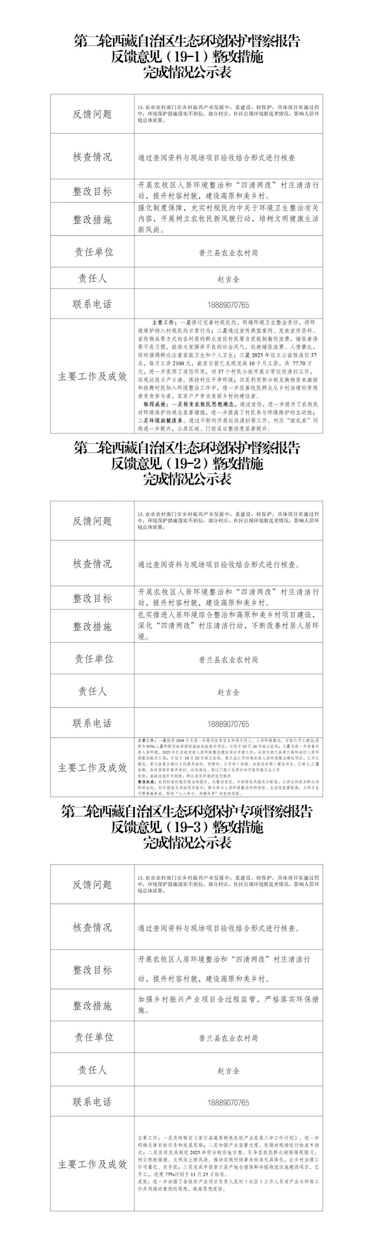 第二轮西藏自治区生态环境保护督察报告反馈意见整改措施完成情况公示表