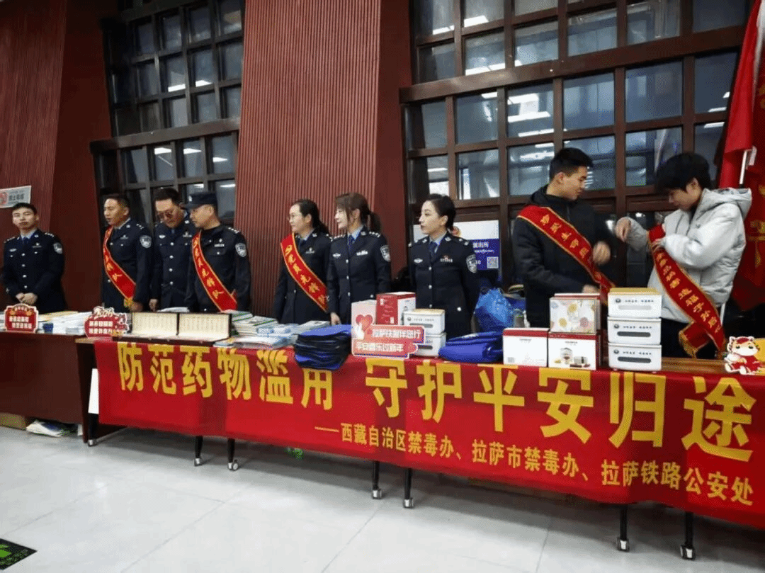 为筑牢春运期间的禁毒防线,提高广大旅客及市民的识毒、防毒、拒毒意识,22日春运首日,自治区禁毒办在春运返程高峰期和藏历新年来临之际,联合拉萨市禁毒办、铁路公安处、民航西藏区局公安局分别在拉萨火车站、拉萨贡嘎国际机场集中开展了以“防范药物滥用 守护平安归途”为主题的春运禁毒宣传活动,当天往返旅客近1000余人接受禁毒教育,此活动标志着全区春运期间禁毒集中宣传正式拉开帷幕。自治区禁毒办副主任、厅禁毒总队副总队长普珍出席拉萨火车站活动现场进行检查指导。