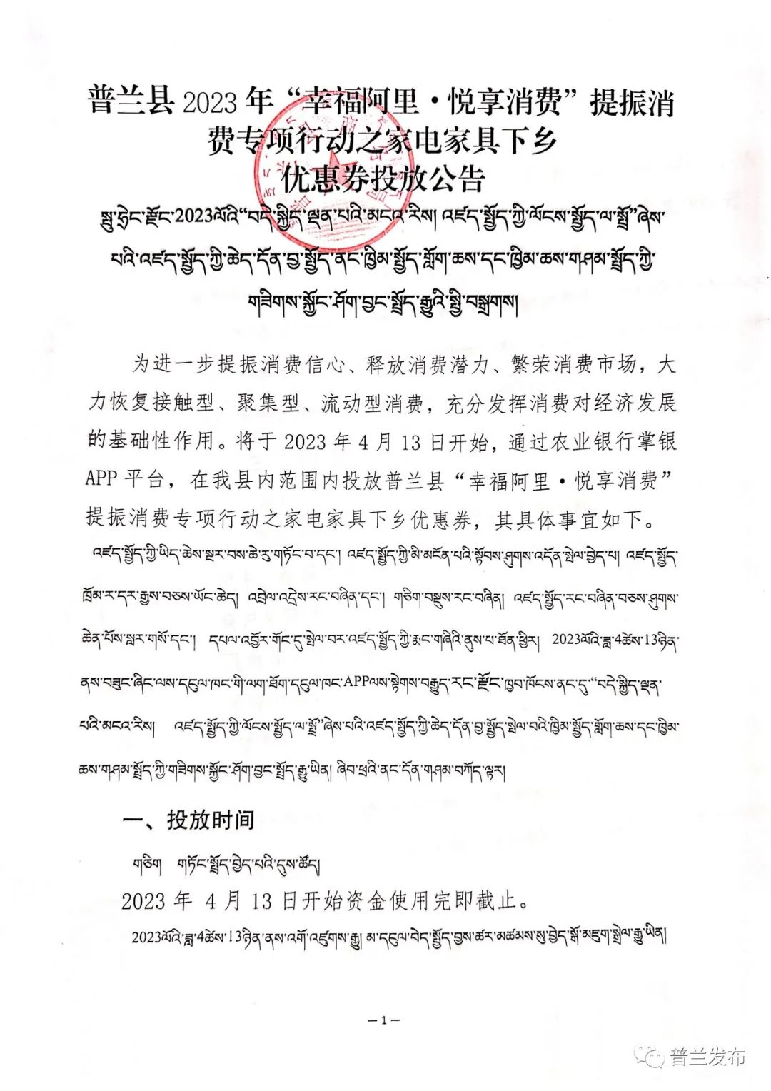 普兰县2023年“幸福阿里· 悦享消费” 提振消费专项行动之家电家具下乡优惠券投放公告