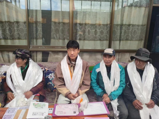 听到久米次仁被清华大学录取的好消息,全村人都来到久米次仁家中,向他献上洁白的哈达,祝贺他考上大学。
