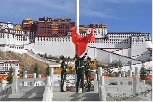 六十五载沐春光,感恩伟大新时代,团结奋进新征程。3月28日上午,纪念西藏百万农奴解放65周年“升国旗 唱国歌”仪式在拉萨举行。自治区党委书记、西藏军区党委第一书记王君正等领导与各族各界代表一同参加。