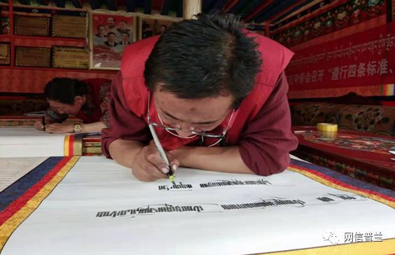 活动现场,广大僧人书写内容紧紧围绕“四条标准”“四讲四爱”主题,挥毫泼墨,尽其所能展示自身书法才能,展现深厚文字书法功底和藏文书法风采。寺管会负责人对书法比赛进行了优秀评比。