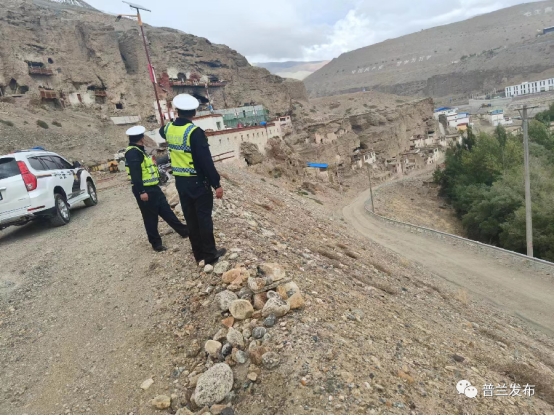 2、9月5日,普兰县公安局组织警力深入辖区贤柏林寺、古宫寺开展通寺道路交通安全隐患排查。工作中,民警通过实地走访,细致查看了贤柏林寺和古宫寺通寺道路安全状况,全面检查了通寺路临崖、陡坡和急弯险道路段护栏、警示标识等建设情况,重点对往年已排查上报的安全隐患路段进行了检查,查看隐患是否整治到位,相关设施设备是否存在老化损毁,确保做到早发现、早整改,坚决遏制通寺道路交通事故发生。检查中发现两处寺庙停车场均无护栏,但贤柏林寺通寺路段正在整体修缮,经向施工单位工作人员了解,预计此次道路修缮会连带进行加装。对于古宫寺停车无护栏这一情况,普兰县公安局已第一时间向应急管理局进行汇报。