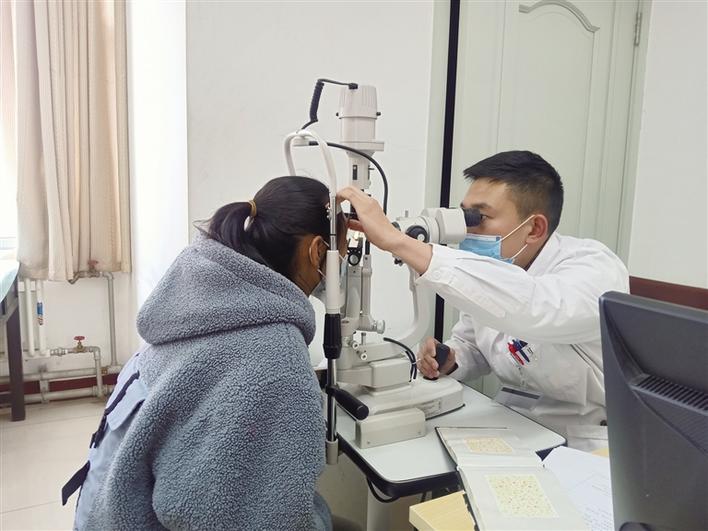 西藏军区总医院体检中心医务人员对预征女青年进行体格检查。
