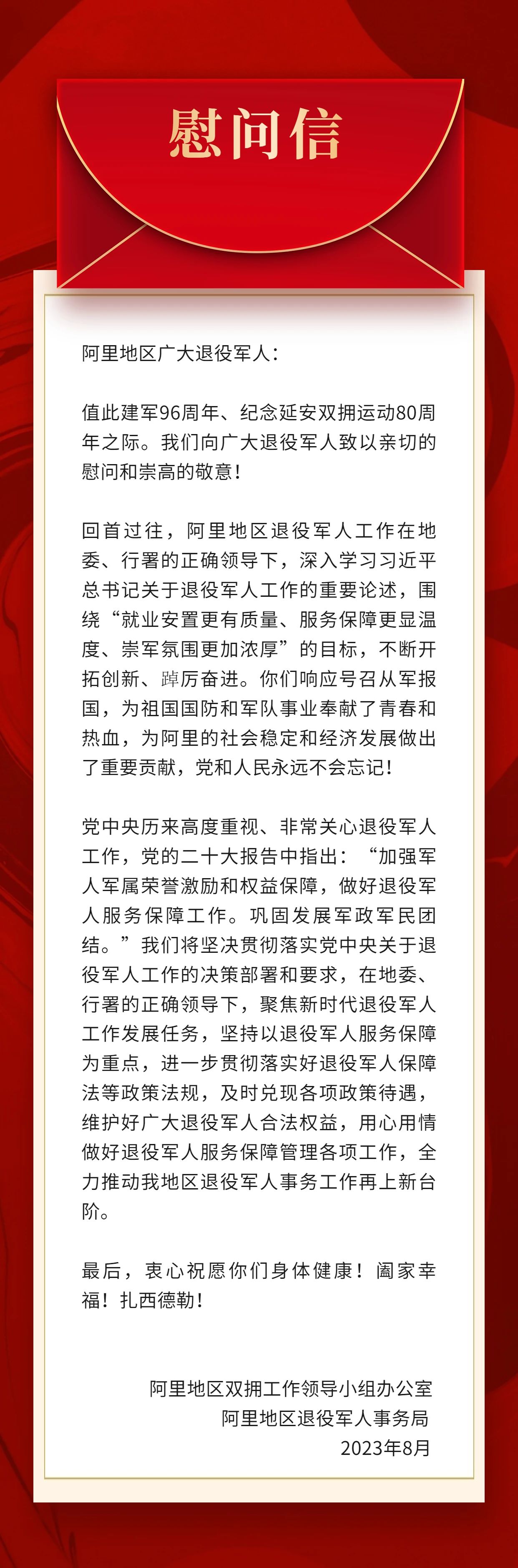 致阿里地区广大退役军人的慰问信
