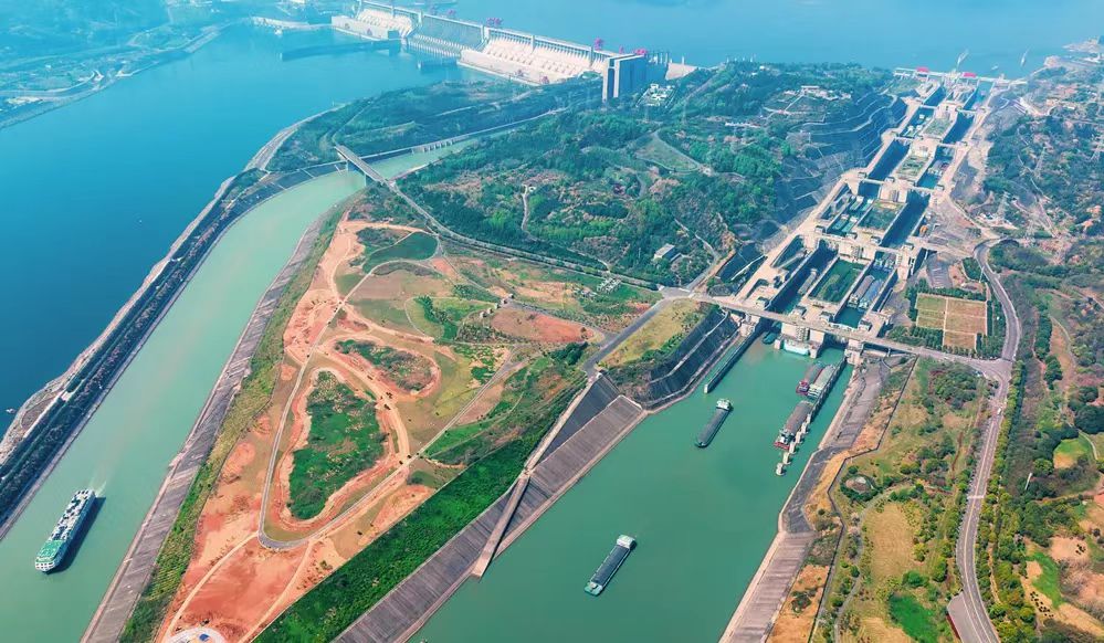 2023年一季度,三峡枢纽航运通过量3989.36万吨,同比增长22.08%,创投运以来一季度航运通过量最高纪录。图为船舶有序通过三峡双线五级船闸和升船机(2023年4月1日摄)郑家裕摄/本刊