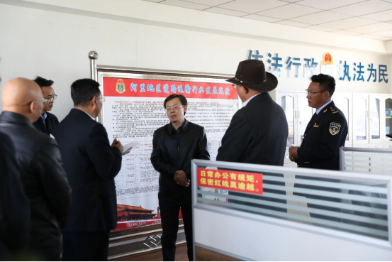段海在阿里地区交通运输局执法大队调研。记者 次仁桑珠 摄