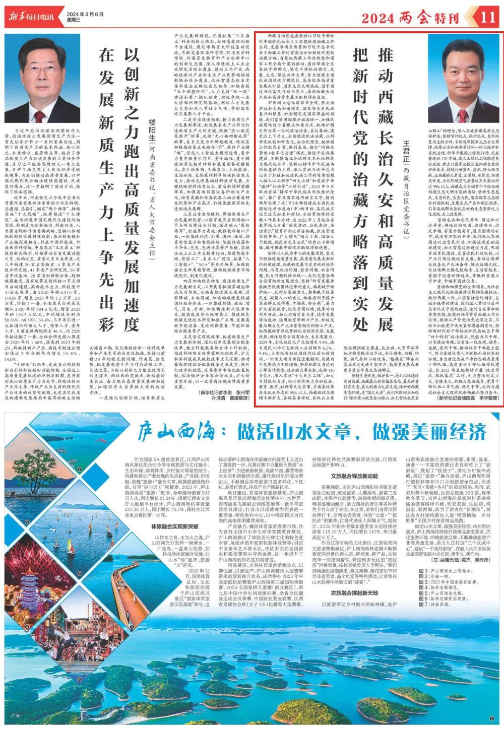 3月6日出版的《新华每日电讯》刊登了西藏自治区党委书记王君正的署名文章《把新时代党的治藏方略落到实处 推动西藏长治久安和高质量发展》,全文如下: