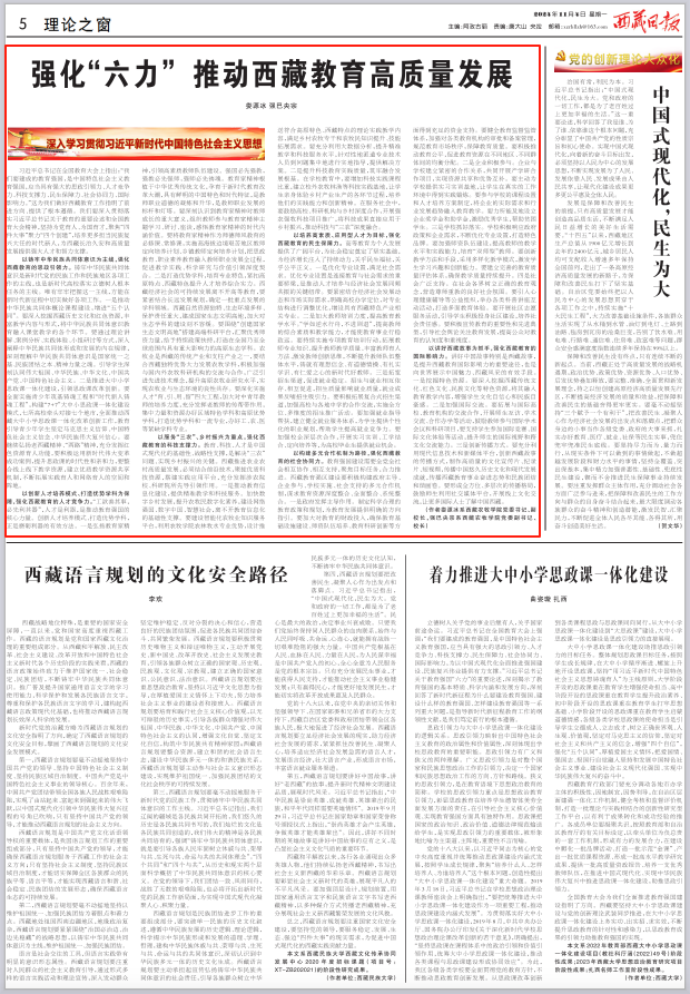 以铸牢中华民族共同体意识为主线,强化西藏教育的思政引领力。