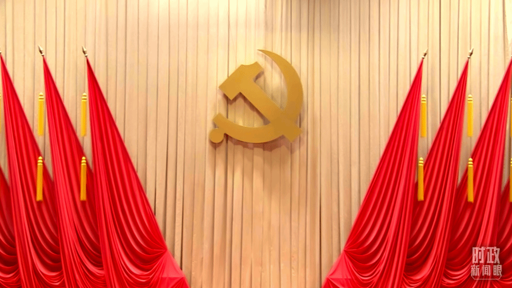 省部级主要领导干部专题研讨班开班式现场悬挂的党徽。