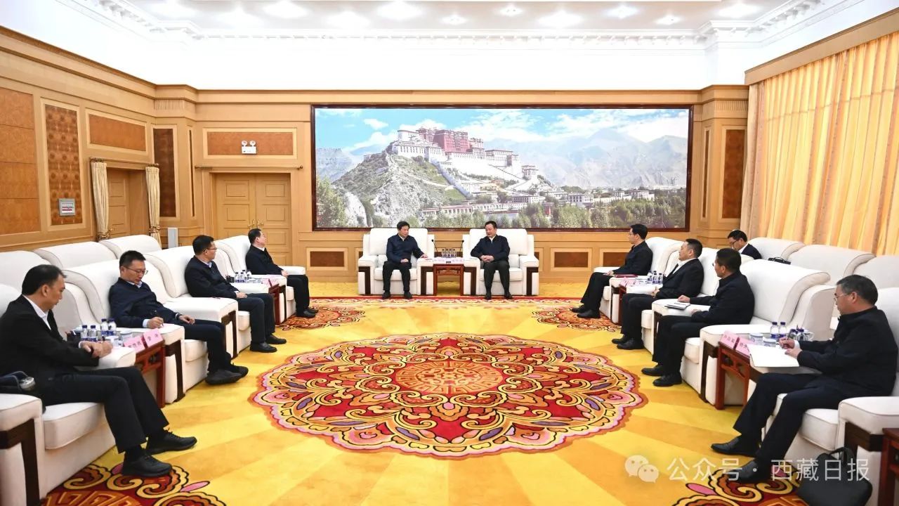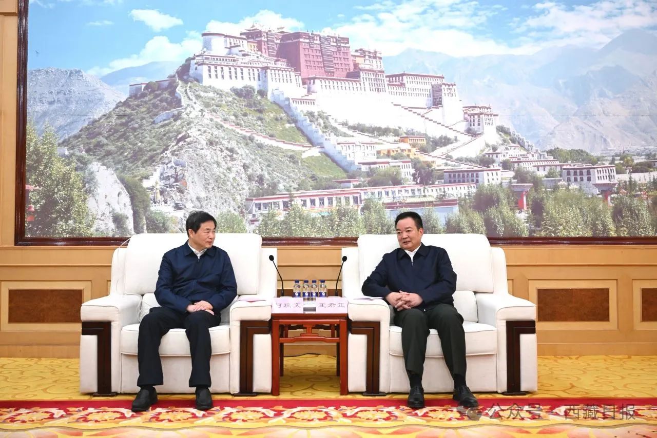 10月15日下午,自治区党委书记王君正在拉萨与中国电信集团有限公司党组书记、董事长柯瑞文座谈。