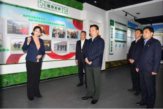 图为王君正详细了解环评领域放管服、中央生态环境保护督察整改落实、生态安全屏障建设规划与重大工程建设进展、绿色发展等工作情况。记者 旦增西旦 摄